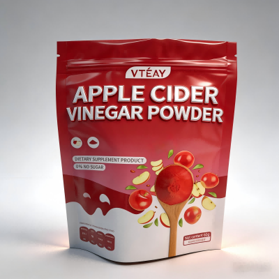 Wykonane z materiału PET/aluminium/PE przeznaczonego do kontaktu z żywnością, woreczek zapewnia, że ocet jabłkowy w proszku pozostanie świeży i skuteczny przez długi czas. Doskonała bariera tlenowa materiału, odporność na wilgoć i właściwości blokowania światła chronią składniki aktywne, zachowując jakość produktu.